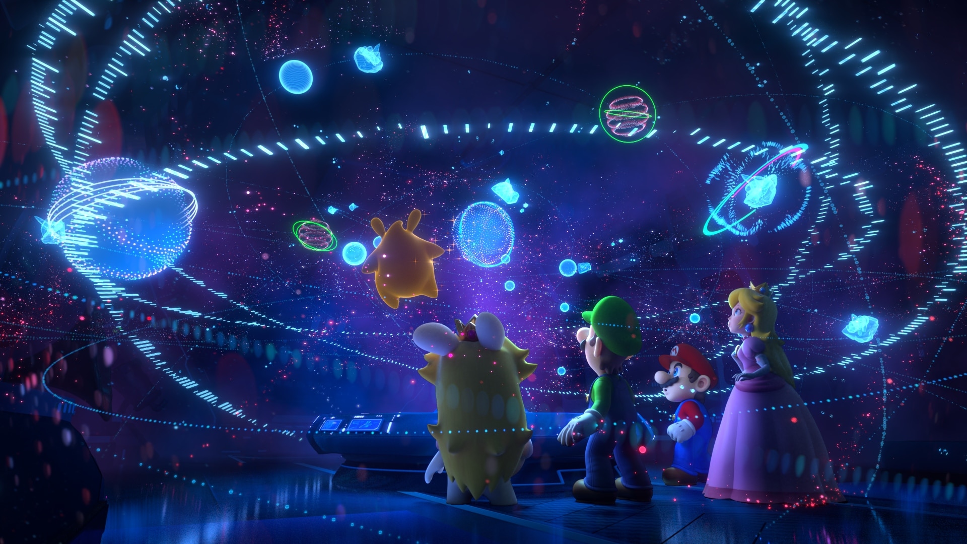 MARIO + RABBIDS SPARKS OF HOPE © 2022 Ubisoft Entertainment. All Rights Reserved. Rabbids, Sparks of Hope, Ubisoft and the Ubisoft logo are registered or unregistered trademarks of Ubisoft Entertainment in the U.S. and/or other countries. Nintendo properties are licensed to Ubisoft Entertainment by Nintendo. SUPER MARIO characters © Nintendo. Trademarks are property of their respective owners. Nintendo Switch is a trademark of Nintendo.